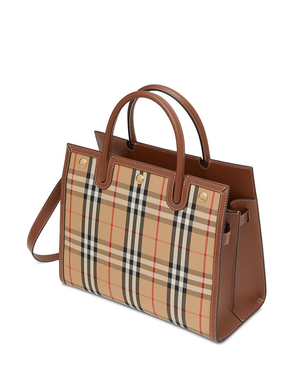 Tote bags are both practical and add instant polish to your looks. Incorporating Burberry’s iconic Vintage check, this Title bag has brown leather trims. Carry by the top handles or wear it over your shoulder with the detachable strap. Featuring top handles, a detachable and adjustable shoulder strap, an open top design, internal zipped pockets, an internal slip pocket, interior compartments divided by a partition, a check print, leather trims and hand-painted edges.