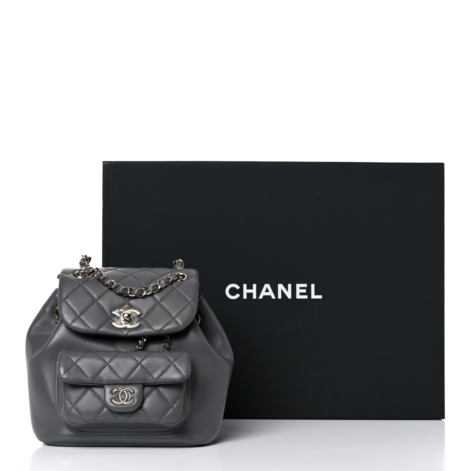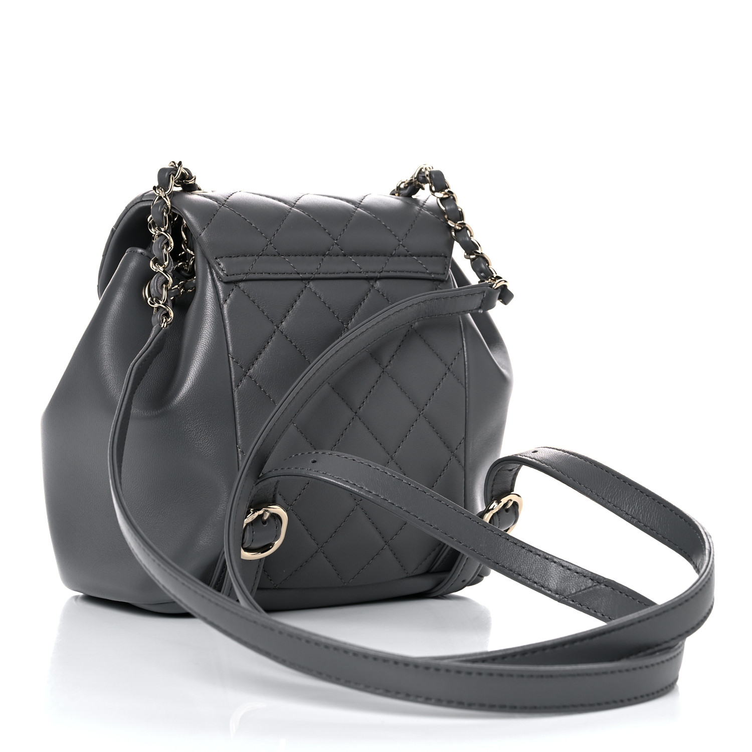 Chanel Lambskin Quilted Small Duma Drawstring Backpack Grey