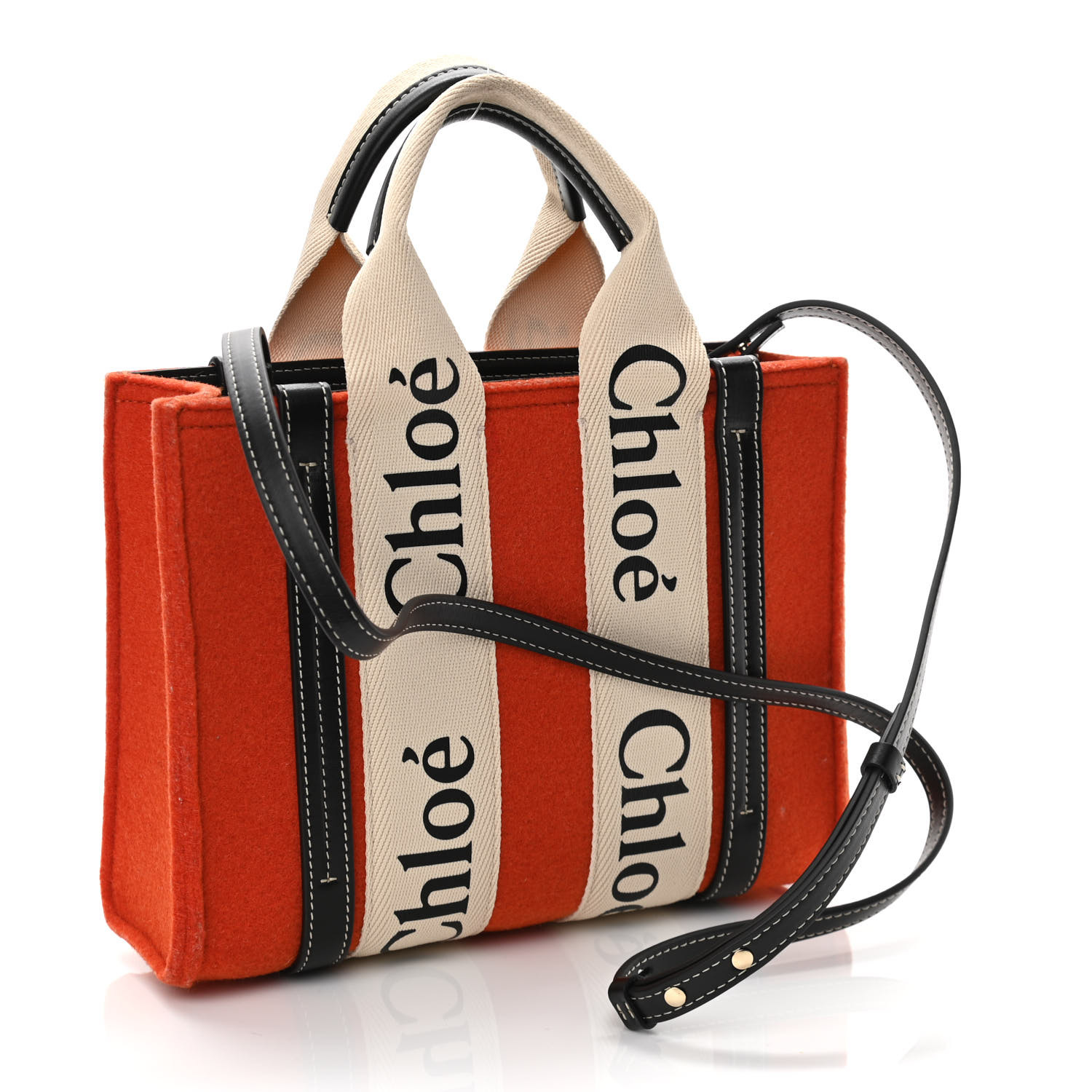 Chloe Felt Calfskin Small Woody Ribbon Tote With Strap Orange
