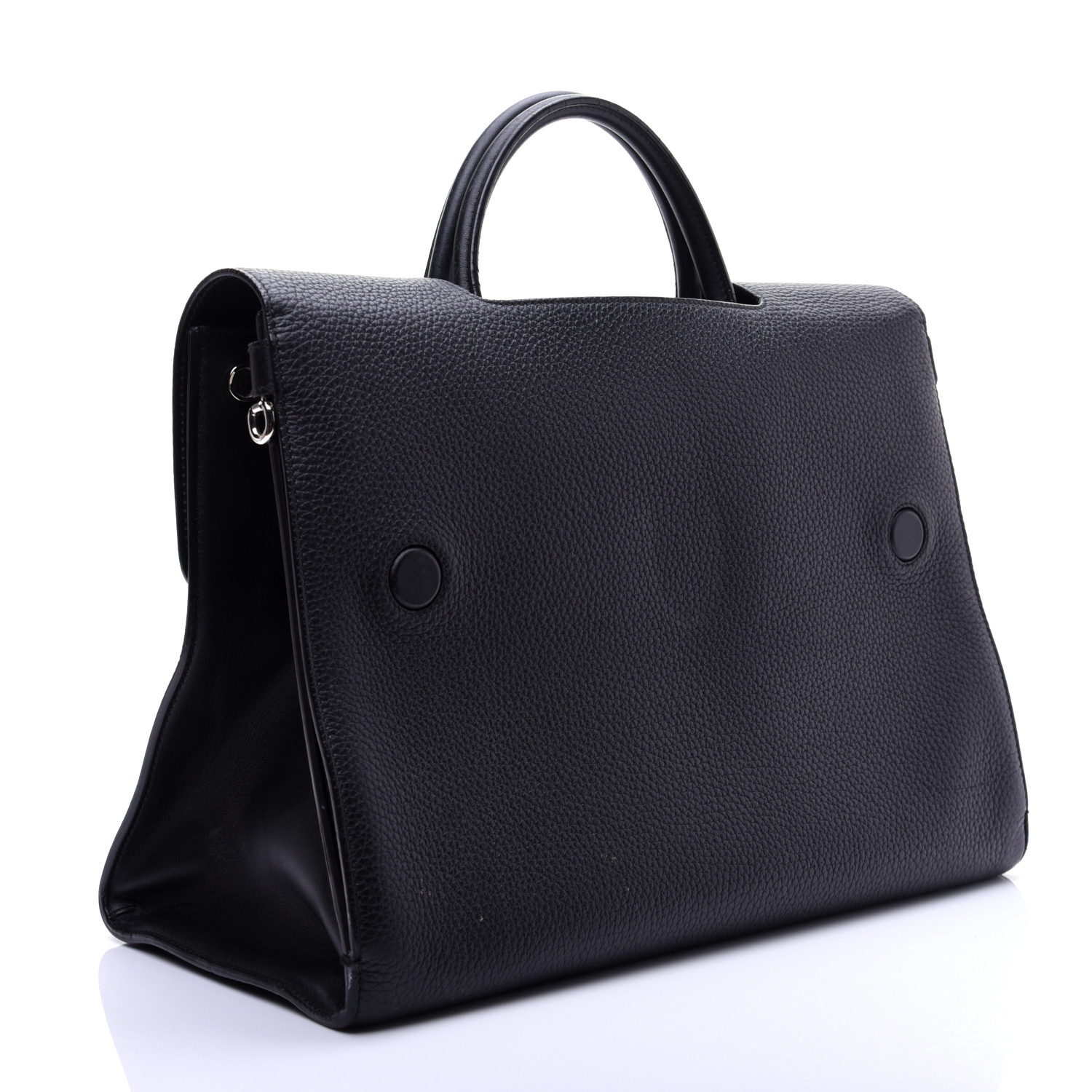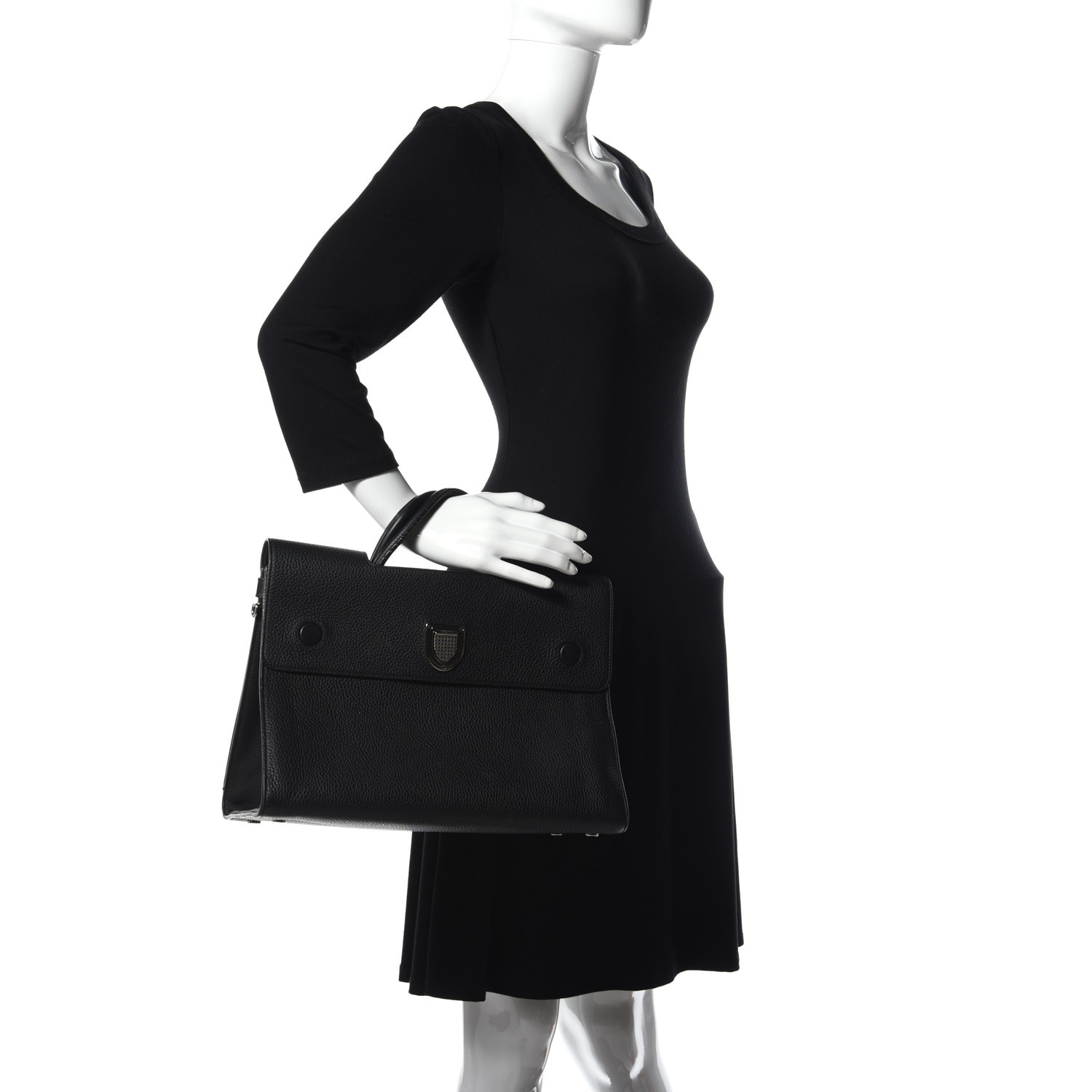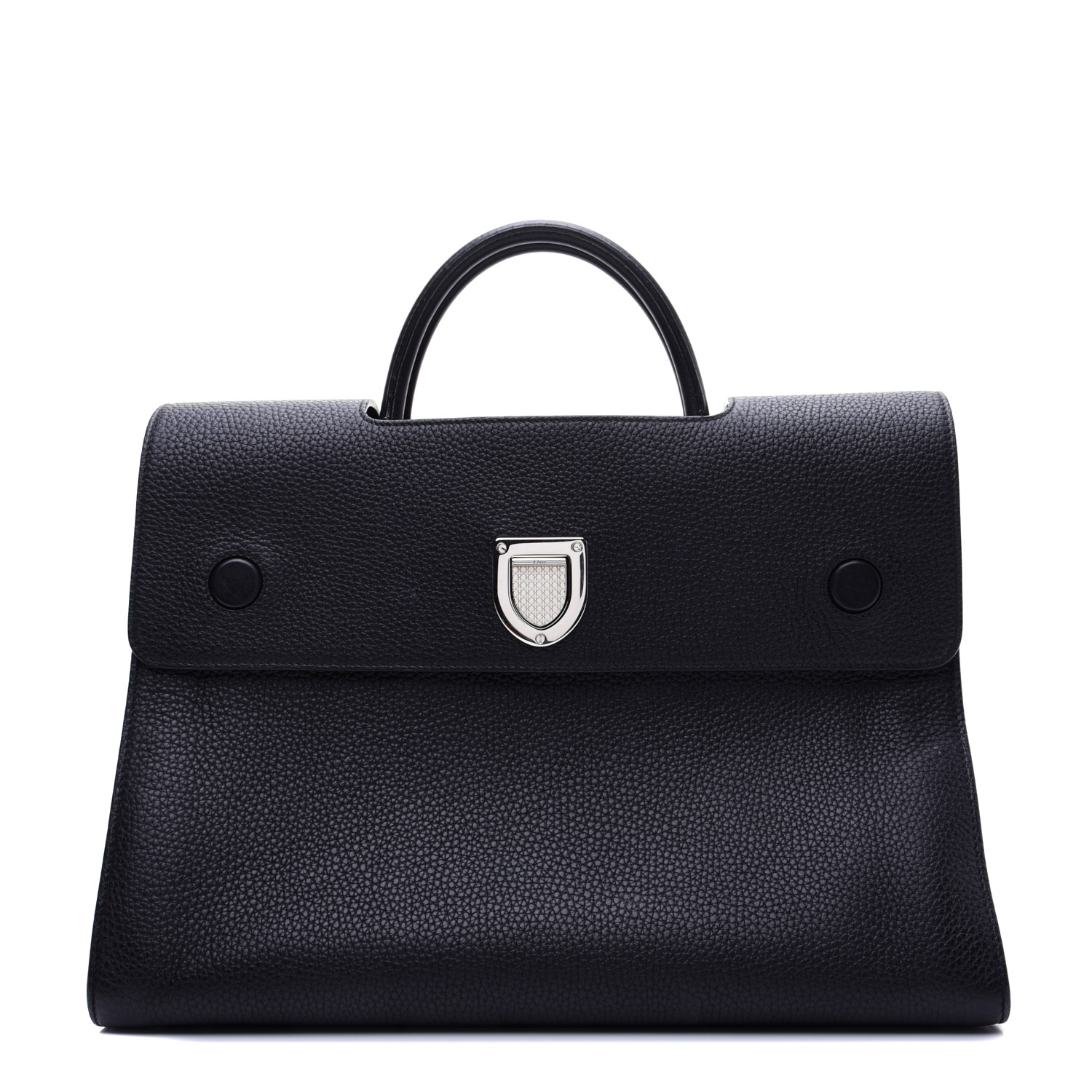 This authentic CHRISTIAN DIOR Grained Calfskin Large Diorever Flap in Black. This chic handbag is composed of grained calfskin leather. This handbag features black rolled leather top handles. The facing flap opens with a textured press lock to a lovely partitioned black calfskin interior with patch pockets.
