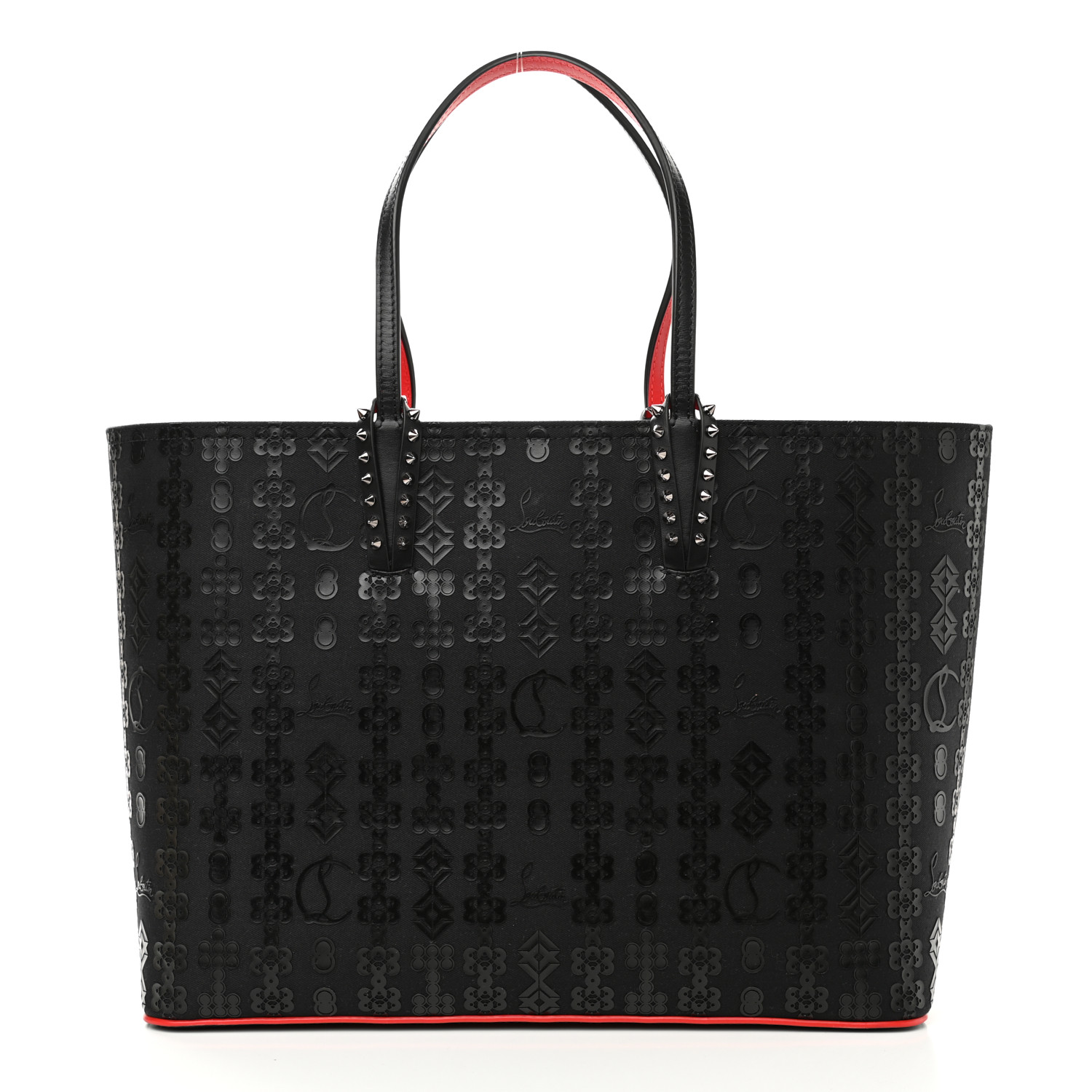 Christian Louboutin Calfskin Loubinetic Spikes East West Cabata Tote Black