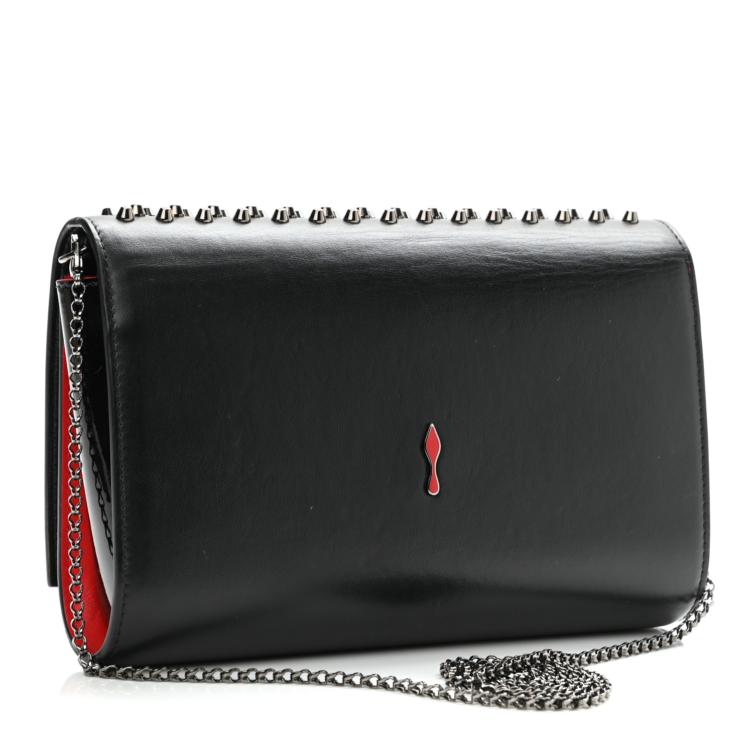 Christian Louboutin Calfskin Patent Spikes Paloma Clutch Black